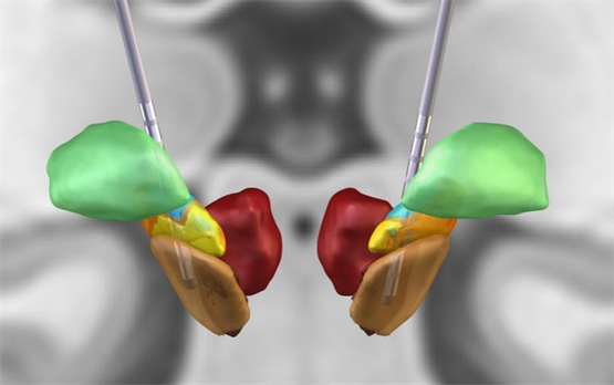 近日,广州医科大学附属第二医院(以下简称“广医二院”)神经外科王业忠教授团队,成功为一位69岁的帕金森病患者李女士(化名)实施了一项特殊脑深部电刺激(DBS)手术,团队采用一根具有八个刺激点的电极,同时精准作用于大脑中两个关键区域——丘脑底核(STN)与黑质网状部(SNr),实现双核团精准调控,为治疗复杂症状的“帕友”开辟了新路径。