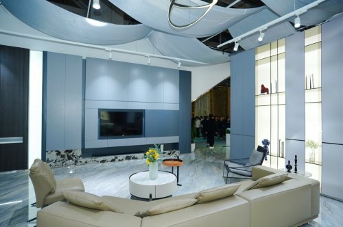 步入馆内,仿佛置身星际漫游之旅,每一处空间都在演绎美学与时空的深度对话,让观众沉浸式感受前卫时尚的未来家居图景,直观触摸宏宇对当代人居美学的前沿探索。
