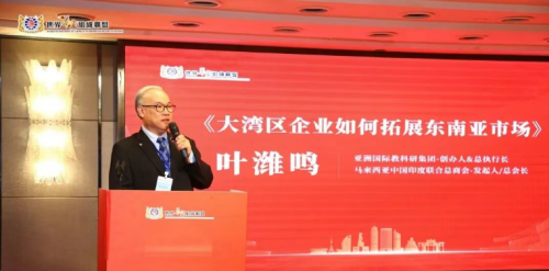 亚洲国际教科研集团创办人、马来西亚中国印度联合总商会发起人/总会长叶潍鸣(东南亚华商代表)分享湾区企业拓宽东南亚市场的策略,搭建区域合作桥梁;