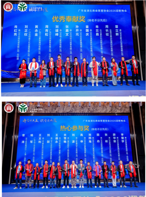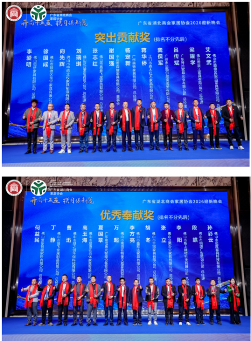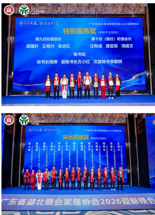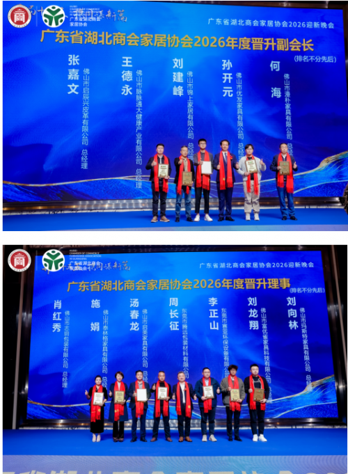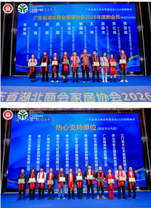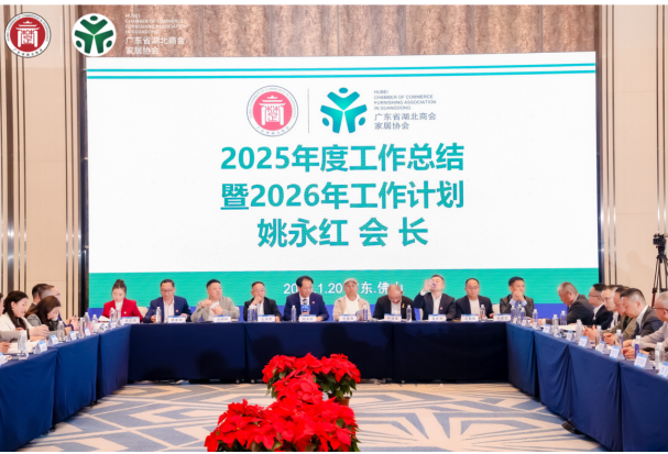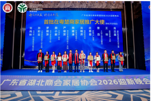 2026年1月20日,广东省湖北商会家居协会2025年度工作总结会议暨2026迎新年会在佛山盛大启幕。协会理监事、会员代表及政企界嘉宾等齐聚一堂,复盘年度成果、表彰先进典型、共商发展大计,以“开局十五五﹒携同谋新篇”为航向,凝聚楚商力量,共绘家居行业高质量发展新蓝图。